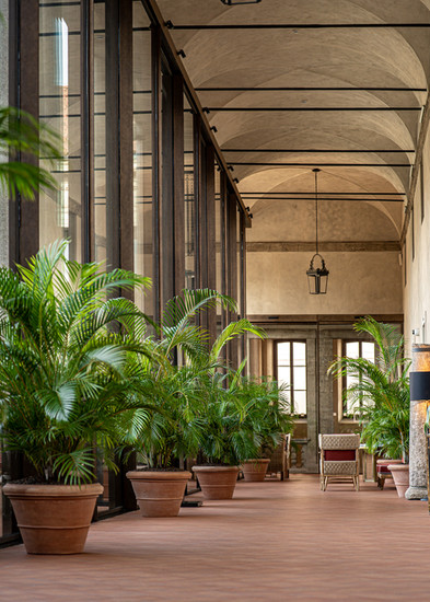 Behind grand baroque gates in the heart of Milan’s fashion district lies Portrait Milano, a serene sanctuary built within the oldest seminary in Europe. The transformation of this landmark into a luxury hotel is both respectful and visionary. Its central courtyard—one of the city’s largest—is an architectural marvel of cloistered walkways and soaring colonnades. Designed by Michele Bönan, the interiors blend Milanese restraint with Ferragamo flair: cane-paneled walls, velvet headboards, and bespoke furniture echoing artisanal craftsmanship.